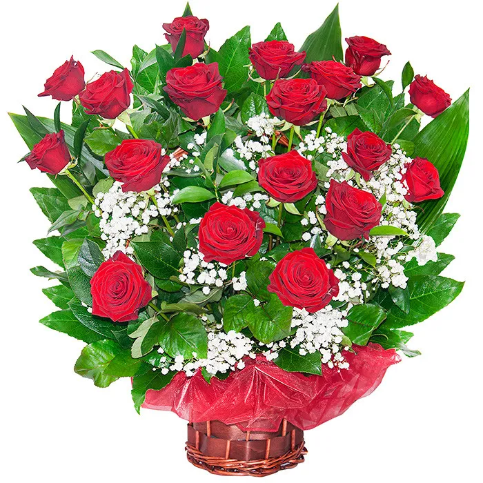 Kwiaciarnia internetowa Poczty Kwiatowej® przedstawia kosz, w którym rozkwitły zachwycające róże. One staną się symbolem Twojej ogromnej miłości czy tęsknoty lub podziękowania i pozwolą Ci wyrazić każde słowo! Ta kompozycja 18 róż z gisówką i dodatkami florystycznymi w koszu zamyka w sobie pełnię tych uczuć i sprawi, że na nowo zagoszczą w sercu tej ważnej osoby. Zamów tę niezwykłą aranżację, dołącz bilecik z życzeniami i okaż bliskim pamięć o nich... nawet bez okazji, a Poczta Kwiatowa® zajmie się całym procesem przesyłki i dostarczenia!W związku z chwilowym ograniczeniem dostępności niektórych kwiatów ze względu na COVID-19, skład bukietu może ulec zmianie. Zachowamy kolorystykę i estetykę kwiatów! Dziękujemy za wyrozumiałość.Dostępność: Cały rok