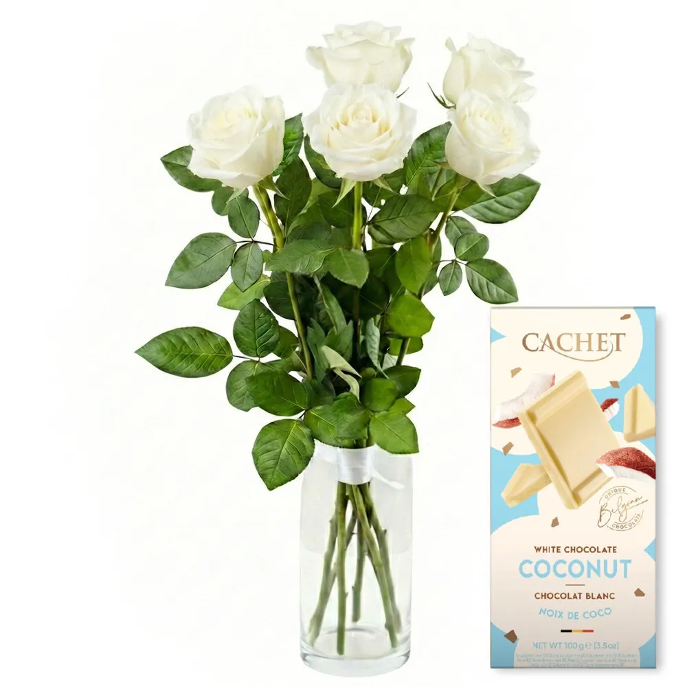 Jakie połączenie będzie idealne dla każdego? To musi być coś, co każdy lubi i doceni. To także musi być połączenie estetyki i znaczenia, które podkreślą wartość i ważność bliskiej nam osoby. Propozycją Poczty Kwiatowej® na taki idealny prezent jest 5 białych róż z czekoladą. One nie tylko zamykają w sobie ogromne piękno, ale i niebywałą słodycz. Staną się gestem, który każdy będzie z przyjemnością wspominać. Nic tylko dzielić się tą wyjątkowością i szerzyć piękno i prawdziwą radość!