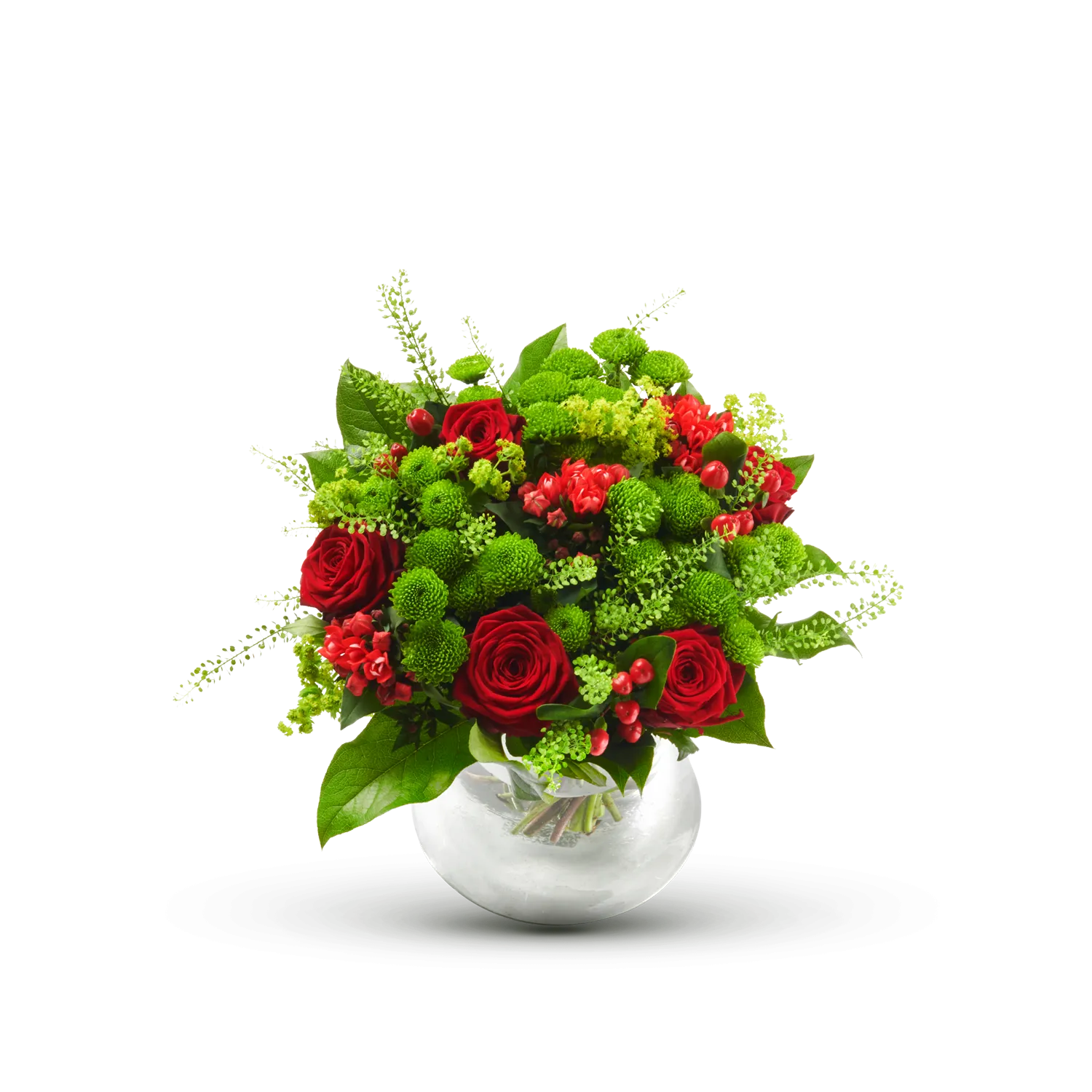Wysyłając kwiaty, szukasz nie tylko niezawodnego partnera, ale także bukietów, które pozostawiają wrażenie. Ten zielony bukiet z akcentami czerwonych róż zadowoli każdego. Wazon nie zawiera.