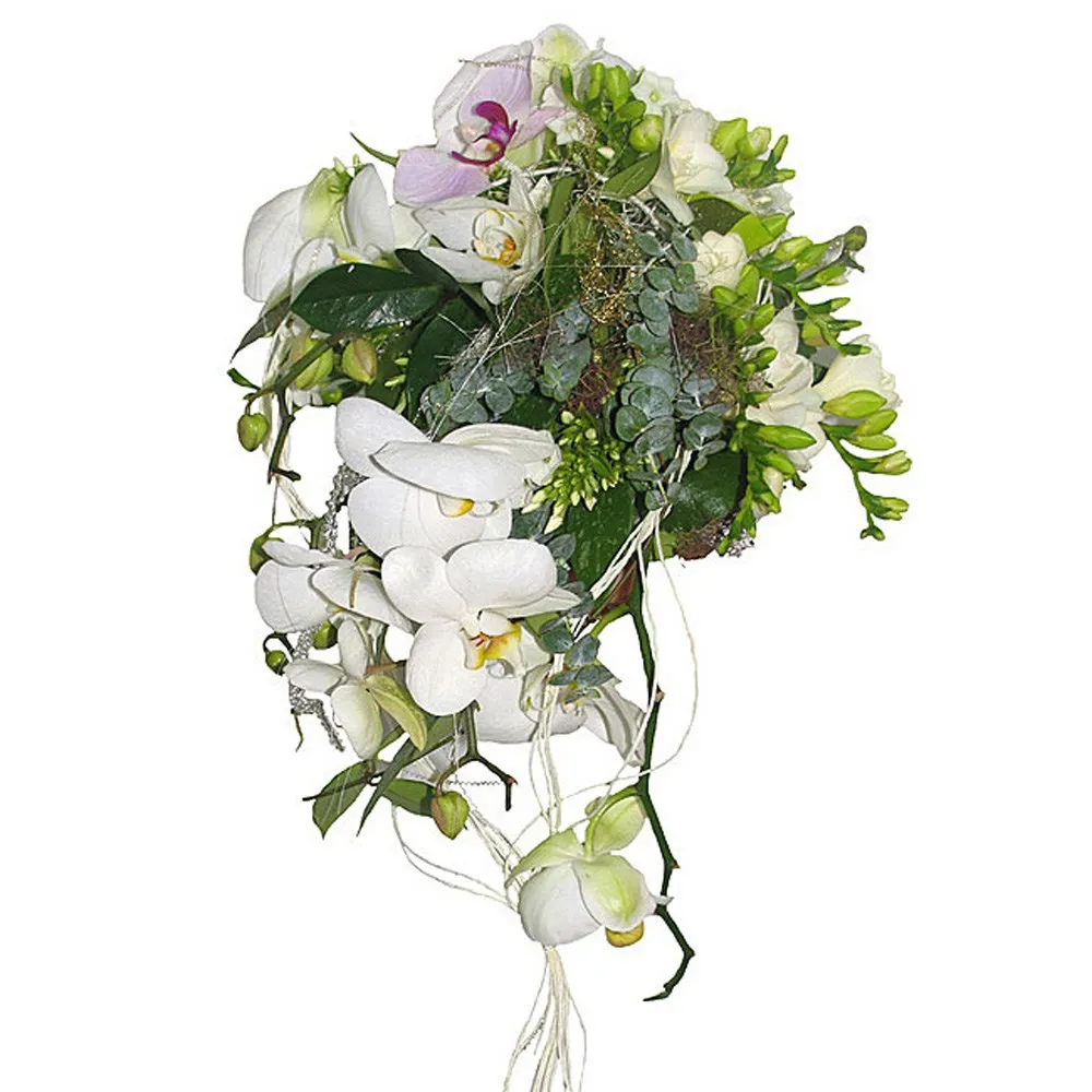 Ten bukiet orchidei będzie elegancko kaskadowo opadał z rąk panny młodej, przyciągając uwagę.Dostępność: Cały rok