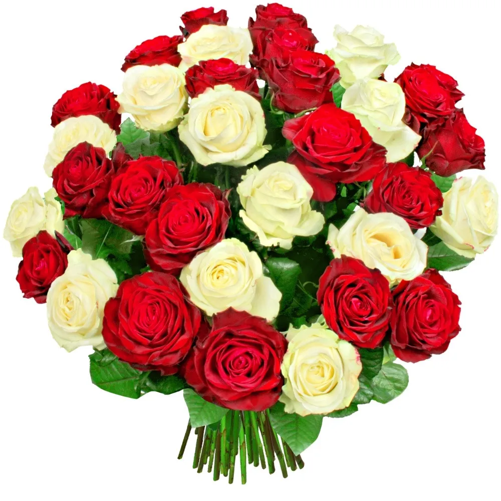 35 róż biało-czerwonych