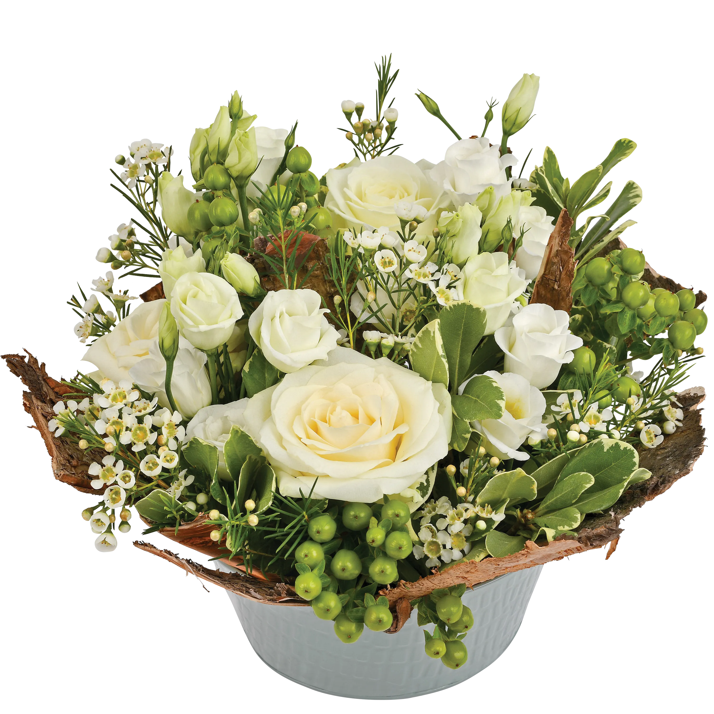 Wyślij swojemu odbiorcy wiadomość pełną czułości i otuchy dzięki naszej kompozycji Cocon, zachwycającej kombinacji zielonych i białych kwiatów z kolcami, róż, lisianthus i kory brzozowej. Prezentowany w wygodnym, łatwym do przenoszenia pojemniku, Cocon obiecuje stworzyć uroczą niespodziankę, gdziekolwiek zostanie dostarczony.Adressez a votre destinataire un message de tendresse et de reconfort avec notre composition Cocon, un ravissant assemblage de fleurs piquees aux tons vert et blanc avec des roses, des lisianthus et de l'ecorce de bouleau. Umieszczony w opakowaniu przystosowanym i łatwym do transportu, Cocon obiecuje stworzyć piękną niespodziankę, niezależnie od miejsca dostawy.