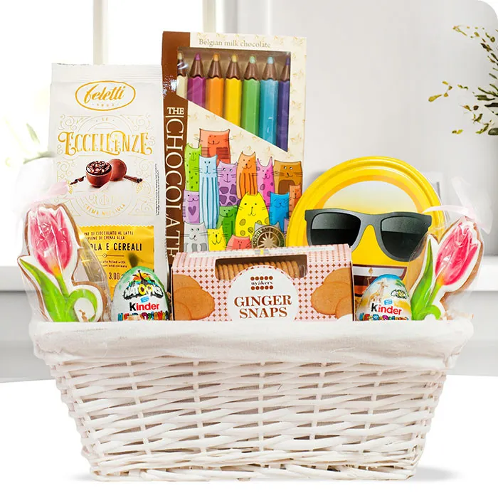 Dziecięcy koszyk to doskonały prezent dla najmłodszych, który zachwyci każde dziecko swoją różnorodnością smaków i kształtów. W eleganckim koszyku znajdziesz bogactwo słodkości i przysmaków, które rozpieszczą podniebienie każdego malucha.