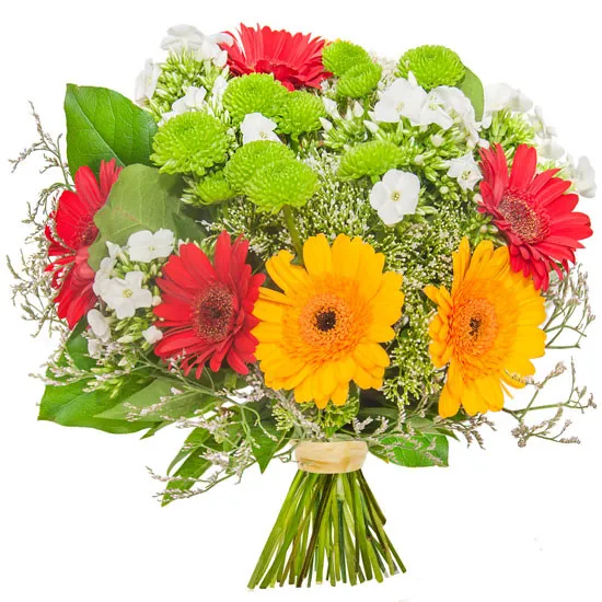 Send your darling a nice and beautiful surprise with the Apollonia Bouquet. This warm and bright composition will make the day unique and the recipient will feel very distinguished and appreciated. The Apollonia bouquet consists of beautiful, colourful gerberas, next to which we can find delicate santini and delicate flox. This composition is a very joyful bouquet of flowers, which makes people smile on their faces! The bouquet will be suitable for a lot of occasions, for mom, aunt, grandmother...Trust us! Poczta Kwiatowa® - your online flower shop.