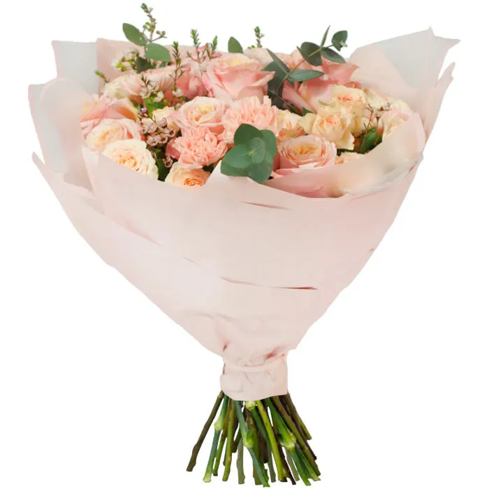 Peach Fuzz bouquet from the offer of Poczta Kwiatowa® is an extraordinary ode to freshness and delicacy in shades of fashionable peach color. This composition combines elegant roses, romantic twig roses and carnation flowers, creating a harmonious whole.The name of the bouquet Peach Fuzz refers to the fashionable color of 2024, and at the same time reflects the softness and freshness that this bouquet brings to the space. It is an excellent gift for those who appreciate elegance and sensuality in one.Let the Peach Fuzz Bouquet become not only a decoration of the space, but also an expression of softness and charm in everyday life. It's a floral tribute to the color that welcomes us to 2024.