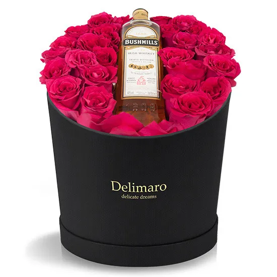 Product Delimaro™ typu flowerbox - red roses in a black box order for the person you want to make an aesthetic surprise with an elegant surprise. Ideal for any occasion! Is it Valentine's Day, wedding anniversary or maybe a romantic dinner? Surprise your beloved beautiful flowers, to which we attach a good whiskey which can make your holiday even more beautiful! The choice is yours! Order today, see how easy it is to make your loved ones happy!
