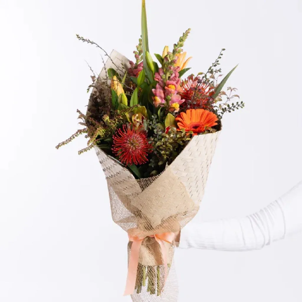 Harakeke Bouquet a stunning tribute to New Zealand’s native greenery and flora. Bursting with vibrant native flowers and lush greenery, this bouquet is skillfully crafted by an Interflora florist and wrapped in a flax mat. Whether you're celebrating a milestone, expressing gratitude, or simply brightening someone’s day, the Harakeke bouquet adds a touch of natural beauty and heartfelt recognition to every moment.