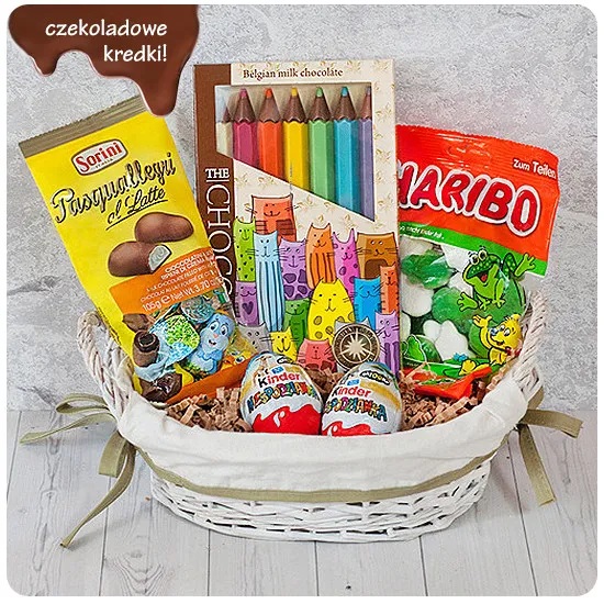 cukier, pełne MLEKO w proszku, MASŁO kakaowe, masa kakowa, emulgator - LECYTYNA SOJOWA, aromaty - wanilia, naturalne barwniki (papryka, kurkuma, spirulina, jabłko, rzodkiewka, czarna porzeczka). masa kakowa w czekoladzie mlecznej 32%, w czekoladzie białej 28%.