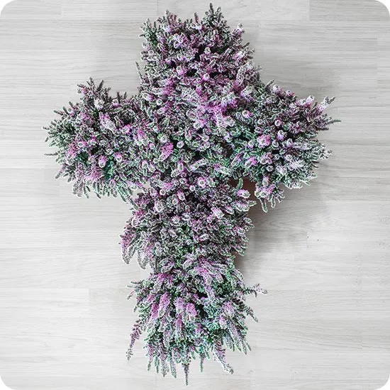 Autumn Remembrance is a picturesque tombstone composition composed of six heather seedlings, arranged in a cross-shaped casing .Heathers beautifully reflect the atmosphere of autumn and are very decorative. They will look nice on tombstones, especially on the coming All Saints Day.Regularly watered, they can be a decoration that will please the eye for a long time.Let us remember that caring for and decorating a grave is a beautiful remembrance of the deceased.Poczta Kwiatowa® provides for the delivery of flowers to the deceased's house, church or cemetery at a given time, depending on your will.