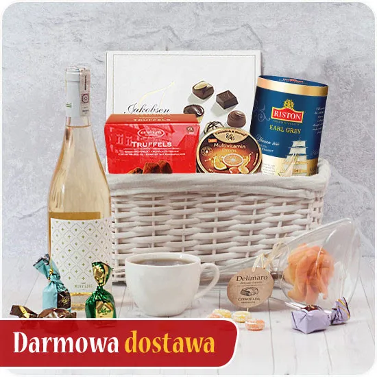 Looking for a present for Mother's Day? Poczta Kwiatowa® offers unusual compositions for this occasion. One of them is a Flower basket consisting of aromatic tea, Italian chocolates, fruit drops, chocolate pralines, Italian Marfi wine and Delimaro™ chocolate rose. The rose is entirely edible because it is made of white chocolate with the addition of flavours and colours. Thanks to such a recipe we received a beautiful flake colour, sweet smell and fruity taste. Chocolate flowers should be stored at a temperature not exceeding 25 degrees. Give your mom this amazing basket and make her happy.Orders which are paid for before 12 o'clock will be delivered the next, working day. Orders within the borders of the city of Warsaw can be delivered the same day, as long as they are confirmed over the phone.Orders are fulfilled within 24 hours.