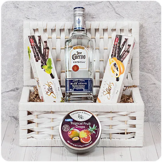 Gift baskets of Poczta Kwiatowa® are gifts which combine both aesthetics and quality as well as seemingly incompatible tastes. As a whole, however, the gift is an unusual composition that surprises and pleases. A proposal full of contrasts is Mexican flavor This gift basket combines the distinct taste of tequila with the sweetness of mint and orange chocolates and the fruity taste of drops. The recipient will be surprised not only by the quality and elegance, but also by the extravagance.