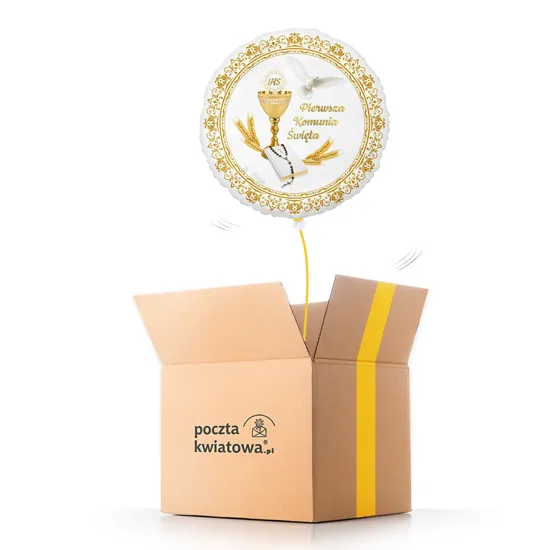 First Communion is a very important holiday in every child's life. Your child is certainly looking forward not only to a unique spiritual experience, but also to a lavish celebration with their loved ones. How do you compensate for your child's absence on this wonderful day? Poczta Kwiatowa® offers a unique helium balloon - First Communion! This surprising gift will delight your child's eyes for at least a few days while joyfully floating above the ground. Give your child a smile!Orders paid up to 12 o'clock will be delivered the next business day. We will deliver your orders in Warsaw even on the same day, after telephone confirmation. Term of order fulfillment 24 hours. The basket shown in the picture is an example and may differ visually from the one that will be delivered.