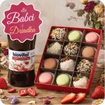 Strawberries in White and Milk Chocolate with Coconut and Nut Topping and Macaroons + Biovital