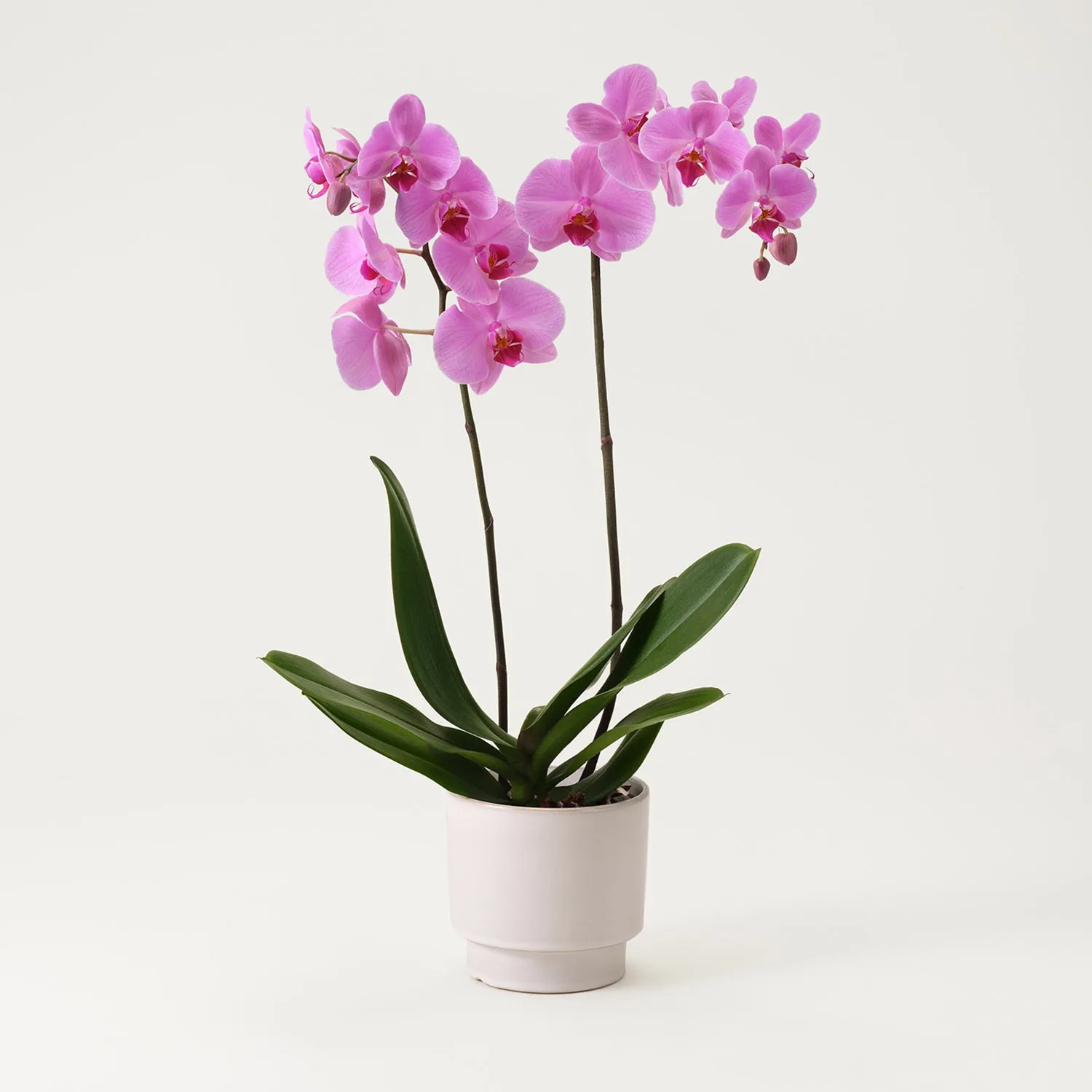 Single pink plant Phalaenopsis. Will be delivered together with matching white pot.