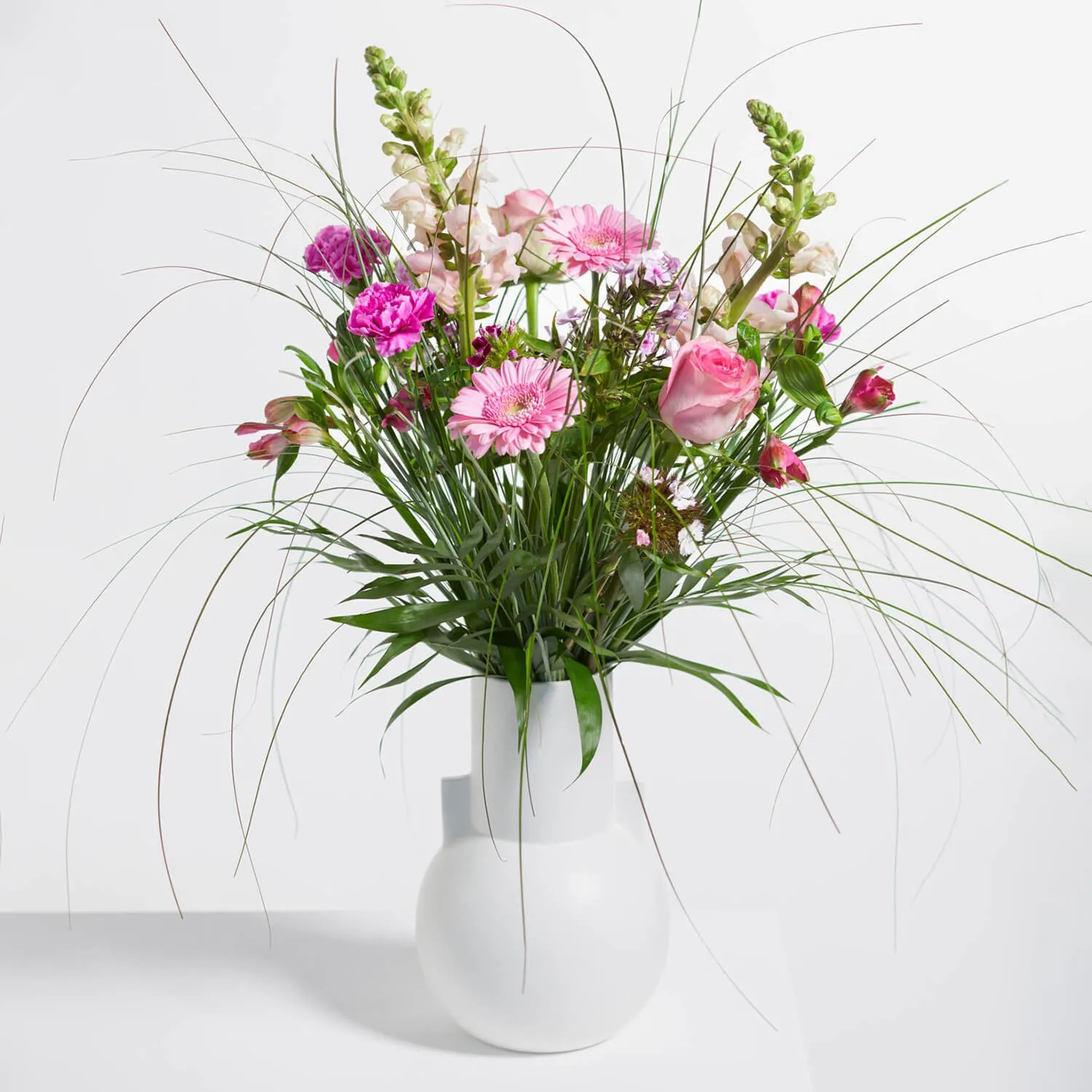A flower as delicate as a summer dream will delight the recipient, especially if they like delicate flowers, which in this bouquet include marigolds, roses and carnations. Vase not included.
