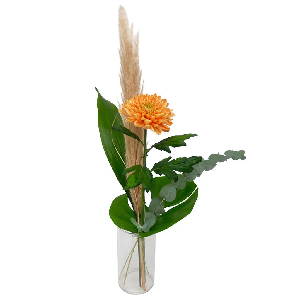 Send your father a charming floral surprise and delight his day! The Surprise for dad -bouquet charms with its simple essence. The color of the chrysanthemum may vary in different shades of orange and greens depending on availability. Vase not included.