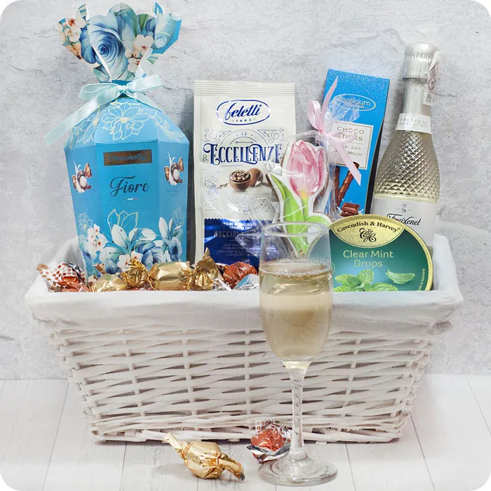 The Big Blue Gift Basket is a wonderful set of assorted delicacies and liquors, ideal as a gift for a variety of occasions.