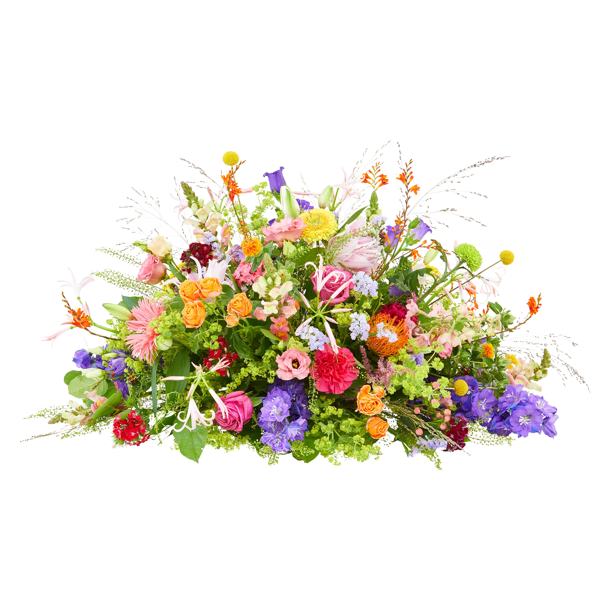 The oval flower arrangement 'Colour splendor' is an airy and modern colourful flower arrangement.