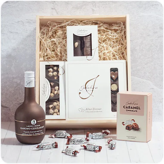 High quality dark chocolate, various filling and real almonds with pralines, sweets and chocolate bar and Chopin Chocolate Liqueur. Our products selection in an elegant wooden box will be a perfect gift for any occasion. Orders which are paid for before 12 o'clock will be delivered the next, working day. Orders within the borders of the city of Warsaw can be delivered the same day, as long as they are confirmed over the phone. Orders are fulfilled within 24 hours.