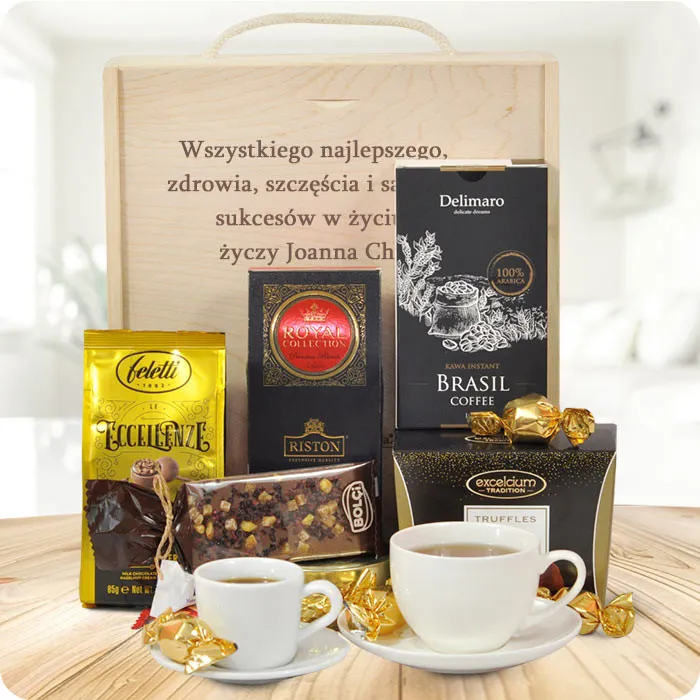 The Golden Glow set with graver to combine exquisite sweets and quality receivers that are available in the world of luxury and exceptional taste sensations. The wooden box adds a whole class and emphasizes the unique character of this gift.