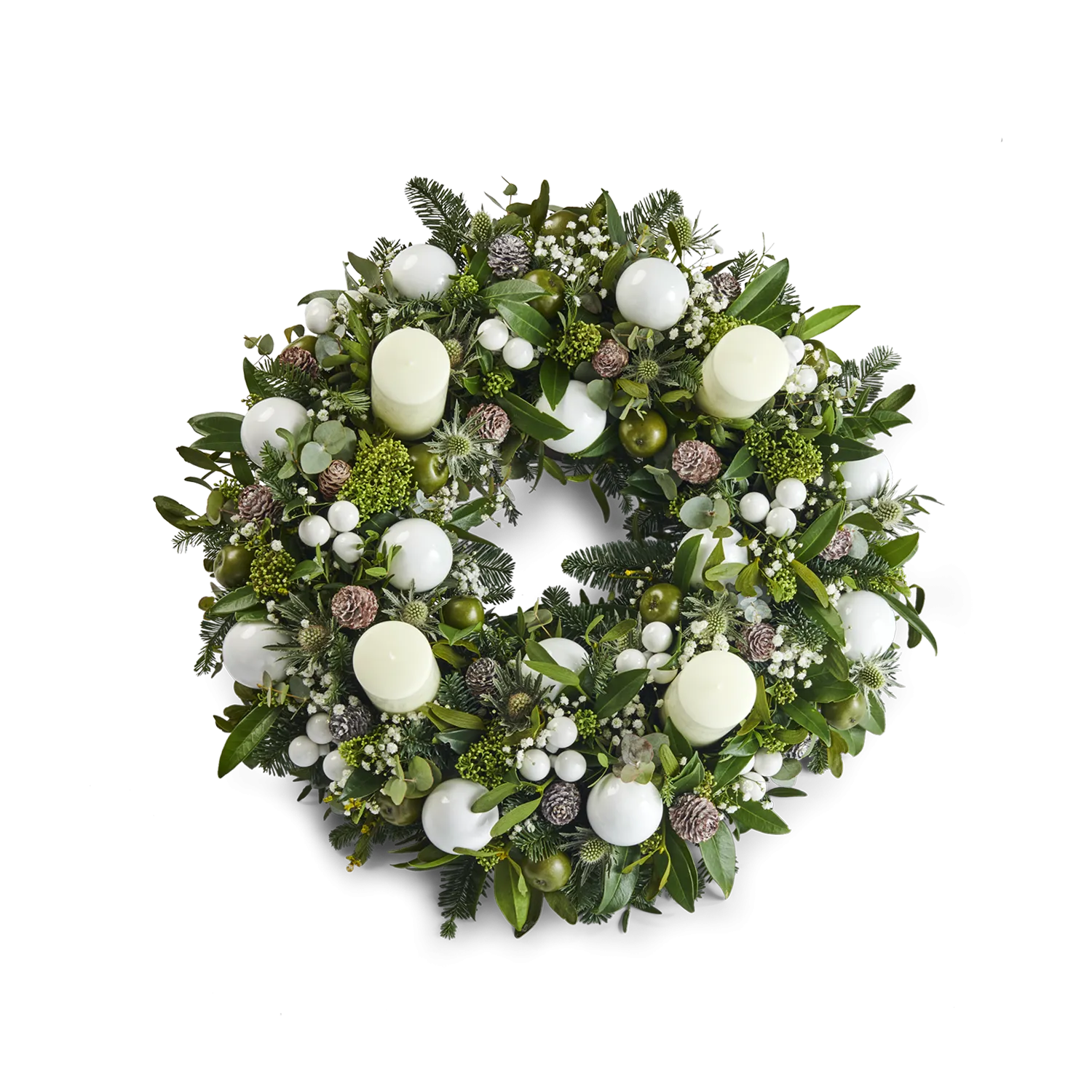 Dla tych, którzy niekoniecznie podążają za tradycją, ale szukają przytulności wieńca adwentowego, ten biały wieniec może być rozwiązaniem. Jest bardzo nowoczesny i przytulny dzięki zimowym akcentom.
