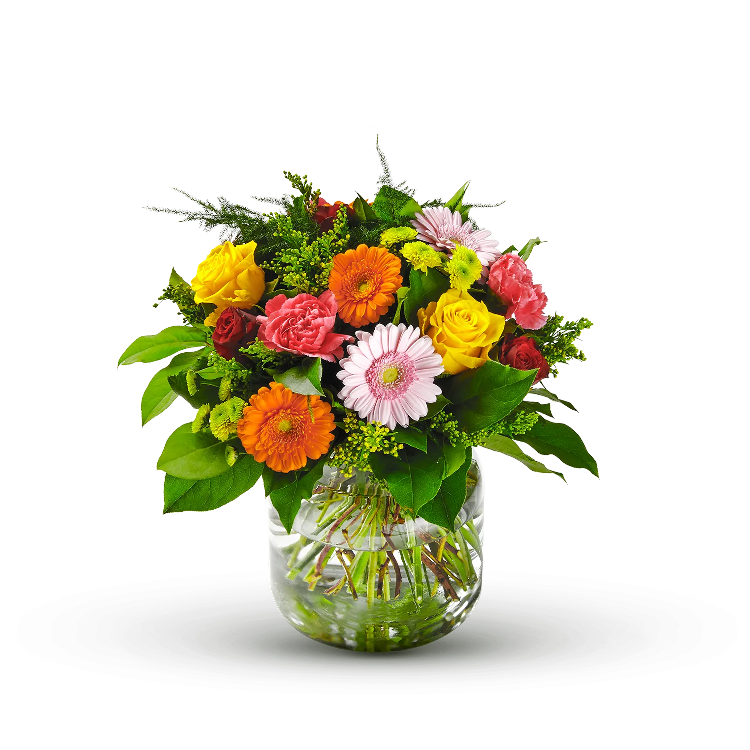 Ten kolorowy bukiet to przyjemność dla oczu. Chcesz komuś pogratulować, rozjaśnić lub po prostu podziękować? Z tym bukietem znalazłeś idealny prezent. Wazon nie zawiera.