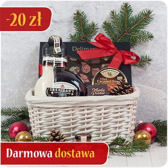 Najniższa cena w ostatnich 30 dniach: 219,00 złSmaki kawy i czekolady są jednymi z najbardziej lubianych. Sugerując się tym Poczta Kwiatowa® przygotowała prezent pod choinkę, który zwali z nóg każdego wielbiciela tych nut smakowych. Kosz upominkowy świąteczny Kawowe święta przygotowany został z dużą starannością - dokładnie wyselekcjonowane i uzupełniające się produkty najwyższej jakości, które pozwolą na chwile rozkoszy. Znajdziesz tu między innymi likier kawowy, miód lipowy i inne wyjątkowe słodycze. Sheridan’s Coffee to wyjątkowy likier o umiarkowanej zawartości alkoholu. Jest to połączenie smaku kawy, kremu śmietankowego oraz irlandzkiej whisky. Dzięki tej mieszance smak jest niepowtarzalny. Prezent pod choinkę w formie kosza ze słodkimi upominkami jest świetnym i oryginalnym pomysłem. Jeszcze lepszym, kiedy weźmiesz pod uwagę, że wszystko załatwisz bez wychodzenia z domu. Zamów Kawowe Święta z dostawą do domu lub pod wskazany przez Ciebie adres, a my zadbamy o terminową dostawę!Dostępność: Cały rok