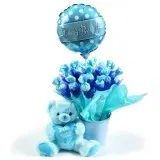 Czy kobieta, która znaczy dla Ciebie szczególnie wiele właśnie została mamą? Jesteś z niej bardzo dumny i cieszysz się, że mogła powitać na świecie swojego długo wyczekiwanego synka.Chciałbyś być przy niej w tych wyjątkowych momentach, jednak wiesz, że ze względu na dzielącą Was odległość tysięcy kilometrów będzie to niemożliwe. Co możesz zrobić w takiej sytuacji?Bardzo dobrym rozwiązaniem będzie wysłanie prezentu prosto do Izraela. Co powiesz na kompozycję prezentowaną na zdjęciu obok? To bukiet błękitnych róż, do którego dołączono balonik nawiązujący do okazji, a także uroczego pluszowego misia. Cóż za ciepłe powitanie na świecie!Skorzystaj z usług kwiaciarni internetowej Poczta Kwiatowa® Izrael, a możesz być pewien, iż zamówiona przez Ciebie kompozycja zostanie dostarczona w ustalonym wcześniej terminie.