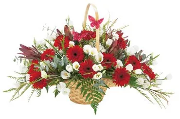 Oto kompozycja, która zachwyca swoją elegancją! W jasnym plecionym koszyku umieszczono kwiaty w odcieniach bieli i czerwieni, takie jak gerbery i eustomy. Całości dopełnia bujna zielenina, a także przybranie w postaci niezwykle uroczych motylków w różowym kolorze.Zrób wspaniałą niespodziankę osobie, która znaczy dla Ciebie szczególnie wiele! Pokaż, że Twoje uczucia wobec niej cały czas są bardzo silne, nieważne jak wiele tysięcy kilometrów Was dzieli.Aby tego dokonać, wyślij piękne kwiaty prosto do Izraela. Niech język miłości zostanie wyrażony w tej pięknej kompozycji! Z całą pewnością obdarowana osoba będzie zachwycona takim podarunkiem.Wystarczy, że skorzystasz z usług Poczty Kwiatowej® do Izraela. Po prostu złóż zamówienie, wybierając interesującą Cię kompozycję, określ czas i miejsce jej dostawy, a możesz być pewien, iż piękny pachnący bukiet dotrze do obdarowanej dokładnie w ustalonym terminie.
