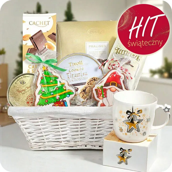 Zestaw prezentowy Świąteczny Blask to esencja ciepła i radości, które wnosi magia świąt. Idealny do podarowania bliskim, wypełni każdy zimowy wieczór odrobiną luksusu i przyjemności. W eleganckim koszyku znajdziesz starannie wyselekcjonowane słodkości oraz wyjątkowy, porcelanowy kubek, który dopełni świąteczną atmosferę.