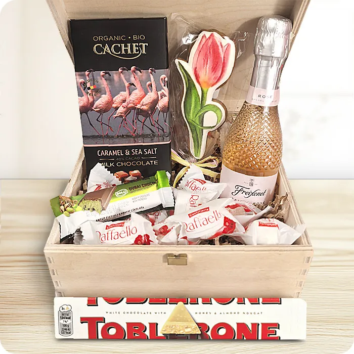 Podaruj bliskiej osobie chwilę prawdziwej przyjemności! Kropla Przyjemności to wyjątkowy zestaw zamknięty w stylowej drewnianej skrzyneczce, łączący wyrafinowane smaki czekolady, delikatnego piernika i musującego wina. To idealny prezent na każdą wyjątkową okazję.