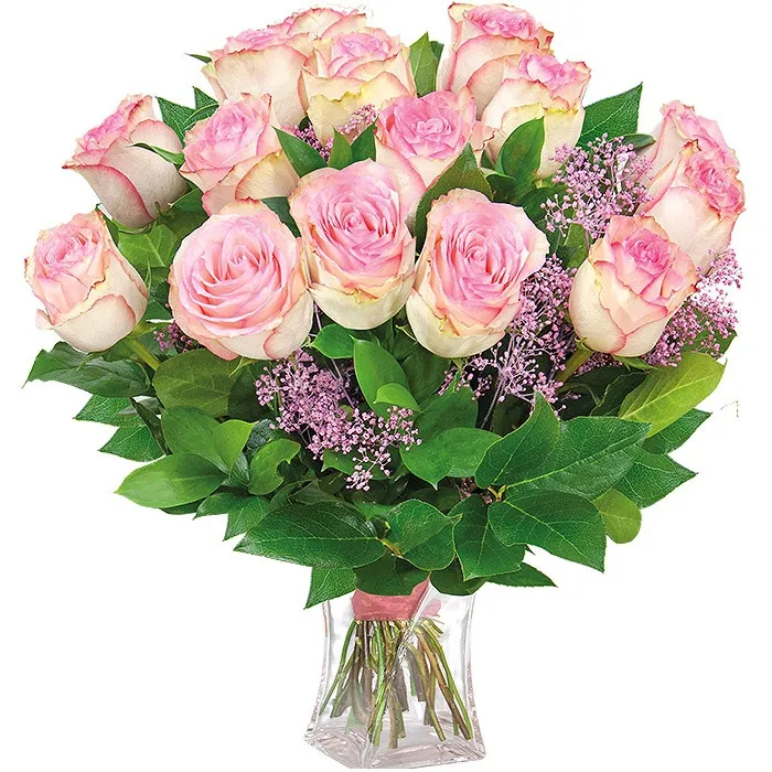 Romantyczna kompozycja piętnastu różowych róż w eleganckim wazonie prosto pod wskazany adres! Opowiedz kwiatami o uczuciach, które skrywa Twoje serce. Wyślij delikatne róże i oczekuj ogromnego rumieńca. Bukiet rumieniec dostarczany jest razem z wazonem. Zdjęcie przedstawia róże długości średniej.