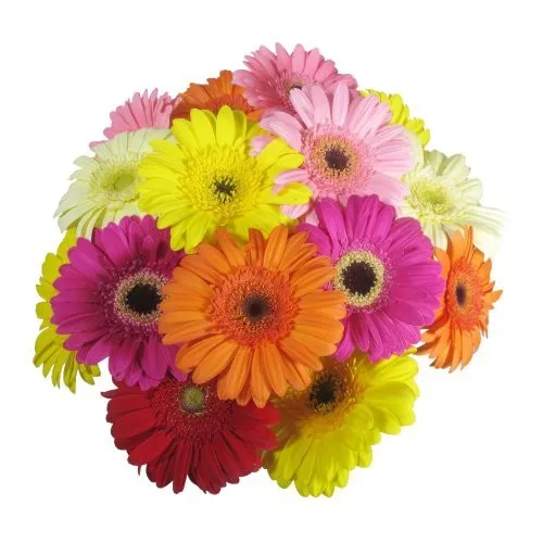 Prezentowane na zdjęciu obok zestawienie składa się z pięknych kolorowych gerber. Te kwiaty wyróżniają się klasyczną elegancją i tworzą wyjątkowo optymistyczny bukiet o kulistym kształcie.