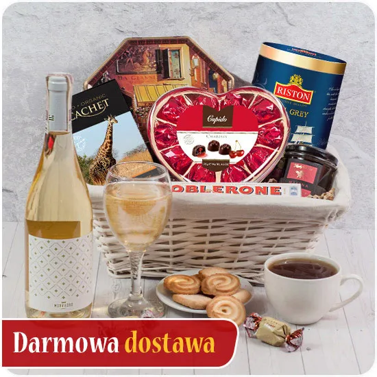 Szukasz alternatywy dla kwiatów na nachodzące święto wszystkich pań? Koniecznie sprawdź kosz upominkowy na Dzień Kobiet Oblicza Przyjemności jest idealnym rozwiązaniem. Obdarowana osoba znajdzie w nim różne formy słodkich upominków, herbat a nawet pysze białe wino. Brak nudy gwarantowany. Z tym zestawem można przenosić się w otchłanie przyjemności na wiele różnych sposobów. Herbata z miodem? Oczywiście! Lampka wina zagryzana ciastkiem? Jak najbardziej! Kobieta zmienną jest, ale z tym zestawem będzie miała możliwość zmiany dla swoich zachcianek :) Chelton Royal Rose to czarna herbata liściasta. Pochodzi z prowincji Ruhana na Sri Lance. Wyróżnia się delikatnym, jednak wyrazistym smakiem oraz ciemnym kolorem naparu.Zamówienia opłacone do godziny 17:00 doręczymy następnego dnia roboczego. Zamówienia na terenie Warszawy doręczamy tego samego dnia po potwierdzeniu telefonicznym. Do wybranych miejscowości doręczamy prezenty także w sobotę.