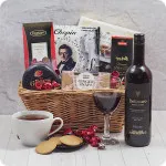 Kosz prezentowy zgodny z zamówieniem. Na minus - Pomimo że dostawa była zamówiona na 23.12 kurier przywiózł paczkę 22.12.