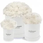 Białe goździki w pudełku białym