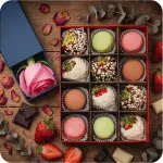 Truskawki W Białej I Mlecznej Czekoladzie W Posypce Kokosowej I Orzechowej Z Makaronikami + Różowa Róża