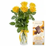 5 żółtych róż z czekoladą