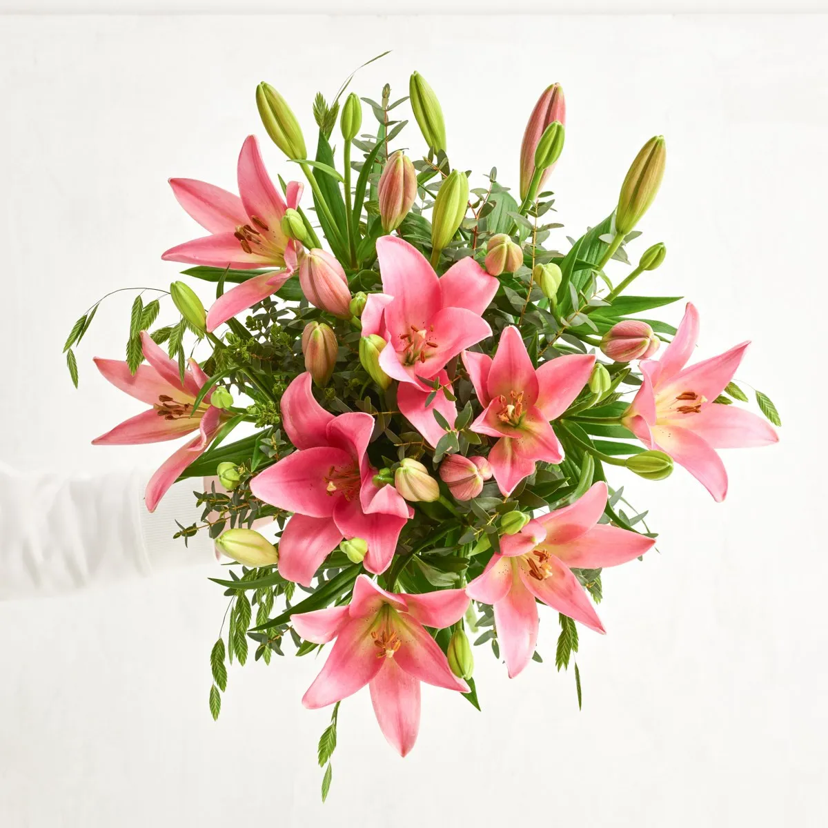 Te piękne lilie zadowolą każdą obdarowaną osobę. Jest to wysoki bukiet o nowoczesnym wyglądzie. Aby mieć pewność, że odbiorca będzie mógł cieszyć się bukietem tak długo, jak to możliwe, nie można oczekiwać, że lilie w dniu dostawy będą w pełnym rozkwicie.Dostępność: Cały rok
