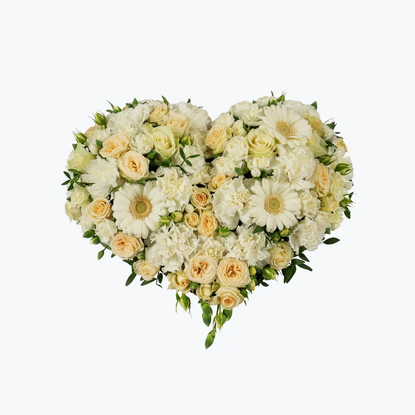 Serce pogrzebowe ze wstążką 248014 Klasyczne serce kwiatowe wypełnione różnymi pięknymi odmianami kwiatów w kolorze białym i kremowym.Szerokość 35 cm.Najbliższa rodzina często wybiera dekorację trumny, podczas gdy przyjaciele i krewni często wybierają wieniec, serce lub bukiet.Wstążka jest często odczytywana w kościele, jako miłe ostatnie pozdrowienie.Kartka to świetny sposób na wysłanie osobistych pozdrowień do krewnych.Kwiaty na pogrzeb są dostarczane do kościoła na długo przed ceremonią.