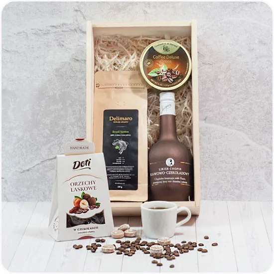 Szukając prezentu warto zastanowić się nad czymś osobistym. Prezent z grawerem jest propozycją, która idealnie sprawdzi się jako upominek na każdą okazję. Słodki Poranek to prezent, dzięki któremu będziesz mógł wyrazić to, co ciężko jest przekazać w słowach. W tej eleganckiej, drewnianej skrzynce z grawerem znajdziesz produkty, którymi ich odbiorca będzie mógł się cieszysz nie tylko w poranki! Jest to połączenie kawy ziarnistej Delimaro™, likieru czekoladowego do E.Wedel oraz słodkości, które pozwolą Ci na odrobine rozkoszy.