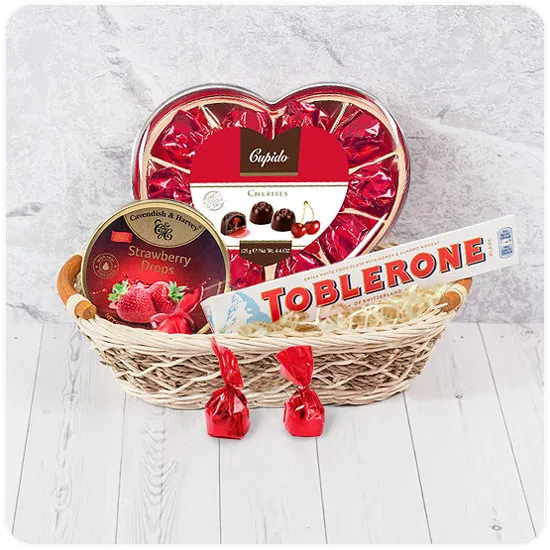 Szukając idealnego prezentu, łączącego w sobie zarówno klasę, jak i słodycz, serduszkowy koszyk sprawdzi się bez najmniejszych wątpliwości. Ten niezwykły podarunek składa się z wyjątkowych produktów, które sprostają oczekiwaniom każdego podniebienia. Znajdą się tam ponadczasowe przysmaki czekoladowe, takie jak znana i lubiana czekolada Toblerone, a także delikatne praliny czy czekoladowe serca. Dla miłośników cukierków z pewnością ulubionym przysmakiem staną się truskawkowe dropsy. Niebywałym atutem jest także wysokiej jakości walor estetyczny. Piękny koszyk, przygotowany z największa dbałością, ucieszy każdą obdarowaną nim osobę.