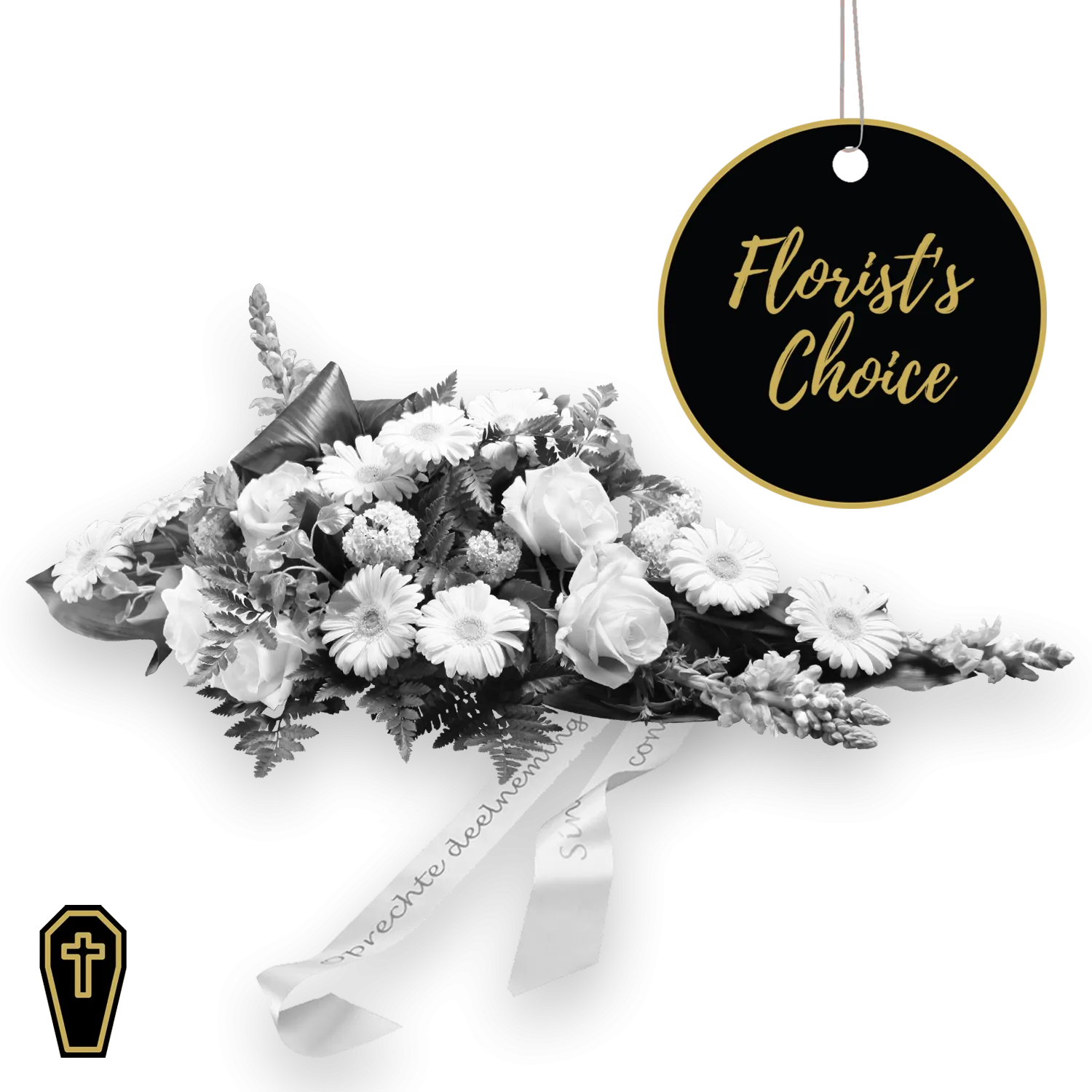 Możesz liczyć na naszych lokalnych florystów, którzy włożą prawdziwe uczucia w kreację i wybiorą wyjątkowy spray pogrzebowy. Pozostaw wybór całkowicie im lub wskaż swoje preferencje kolorystyczne w "komentarzach" podczas procesu zamawiania: np. neutralny, kolorowy lub pastelowy. Wstążka w zestawie