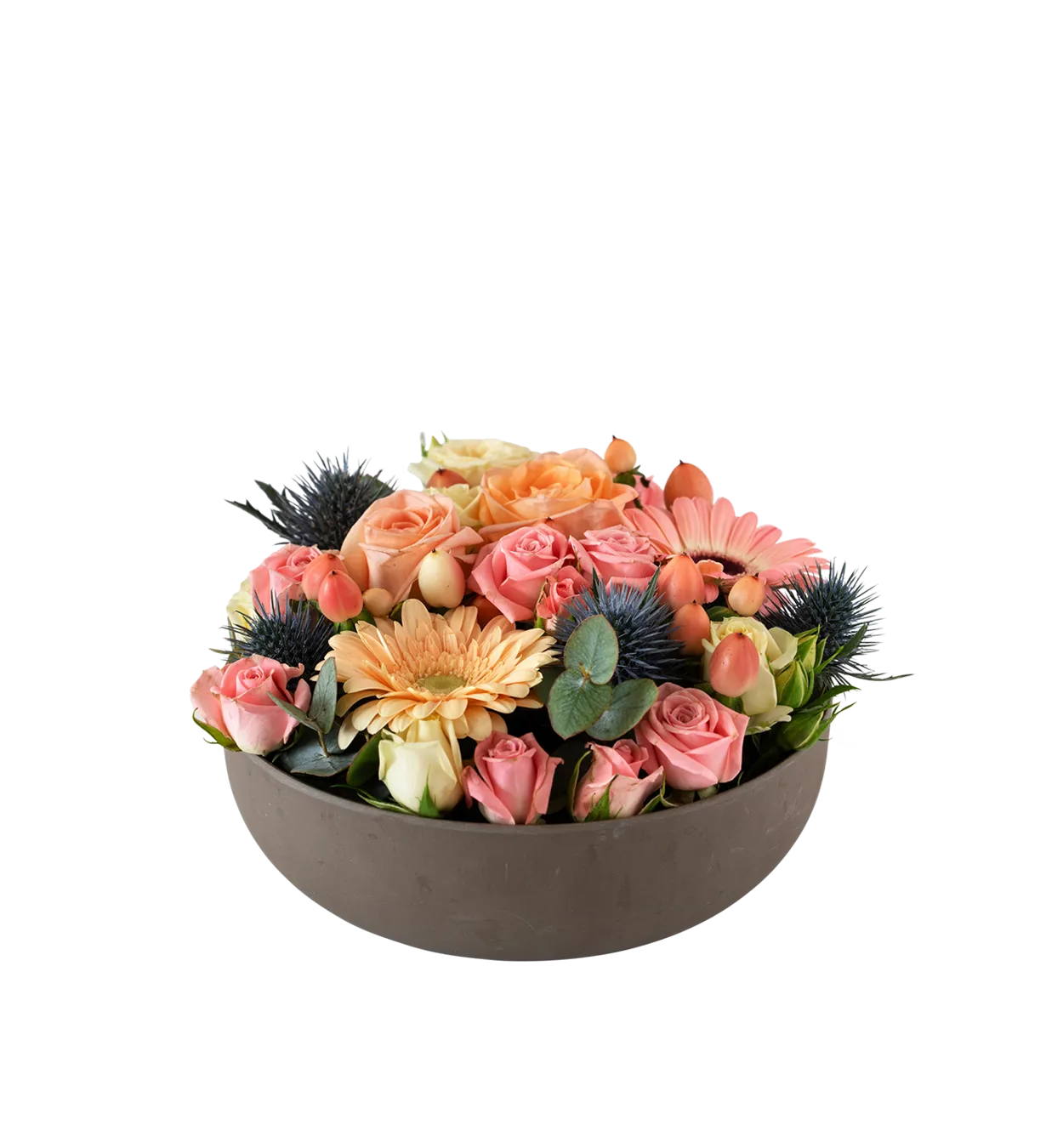 Winter Joy 240150 Piękna dekoracja na każdą okazję. Składa się między innymi z róż i germini. Łatwy w odbiorze, ponieważ można go umieścić bezpośrednio na stole. Dobry wybór, po prostu!Cylindryczna miska ma średnicę 20 cm, jest przyjazna dla środowiska i wykonana z biodegradowalnych materiałów pochodzących z recyklingu.Dostarczamy bezpośrednio do domu, zawsze starannie zapakowane, aby chronić kwiaty.Każda łodyga jest wyjątkowa, więc czasami kolory mogą się różnić lub dokonujemy drobnych korekt, aby zapewnić najlepszą dekorację.Aby przedłużyć żywotność naszych dekoracji, ważne jest, aby uzupełnić je wodą przed umieszczeniem ich na stole. Następnie należy regularnie uzupełniać wodę.Dostępność: 24.01 - 18.04