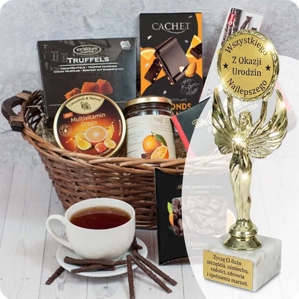 Aby ten słoneczny prezent stał się pamiątką na lata, wzbogaciliśmy go o elegancką statuetkę z okazji urodzin. To ona sprawi, że Twój gest zostanie zapamiętany na długo po tym, jak znikną ostatnie słodkości.