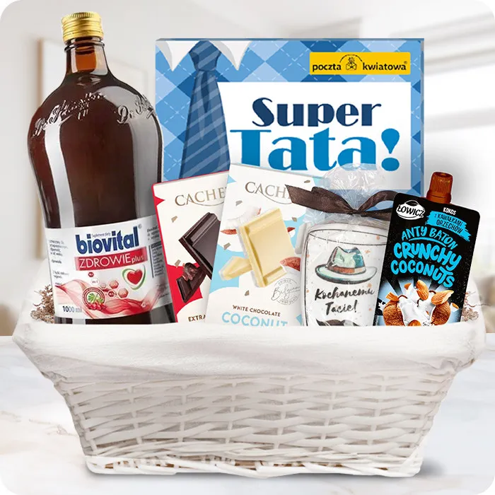 Zestaw „Zdrowie Taty!” to idealny sposób, aby wyrazić wdzięczność i troskę o ukochanego tatę. W koszu znajdują się starannie dobrane produkty, które nie tylko sprawią przyjemność, ale również zadbają o jego zdrowie i dobre samopoczucie. To prezent pełen smaku, energii i ciepłych emocji – doskonały na każdą okazję, a szczególnie na Dzień Ojca.