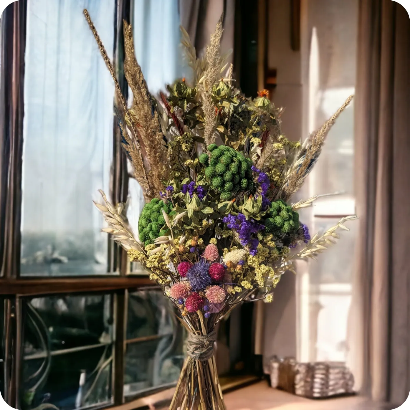 Bukiet z oferty regionalnej - Poczta Kwiatowa® WarszawaZe szczerego serca to bukiet, który przekazuje najszczersze i najgorętsze uczucia w wyjątkowy sposób. Składający się z suszonych roślin i zboża, ten bukiet jest hołdem dla naturalnej piękności i szczerości serca.To doskonały prezent, aby wyrazić swoje najszczersze uczucia i miłość. Jest to bukiet, który przynosi ze sobą prostotę i szczerość, przypominając nam o pięknie prawdziwych, niezakłamanych emocji. To także doskonały wybór na dekorację wnętrza, aby wniosła do domu cząstkę natury i autentycznego piękna.Dostępność: Cały rok