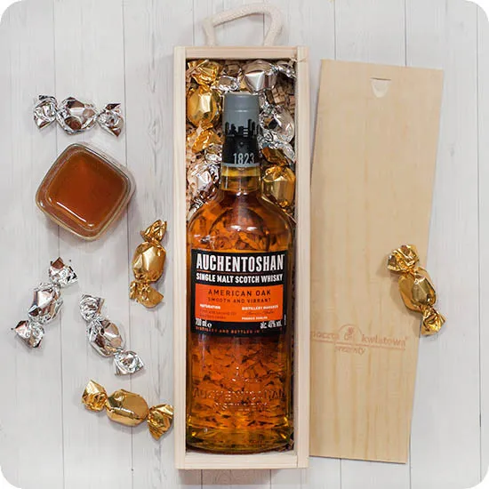 Poczta Kwiatowa® oferuje bardzo prosty i zarazem elegancki podarunek - Zestaw Zestaw Auchentoshan. W drewnianej skrzynce odbiorca znajdzie doskonałą amerykańską whiskey Auchentoshan American Oak oraz pyszne pralinki czekoladowe. Zamówienia opłacone do godziny 17:00 doręczymy następnego dnia roboczego. Zamówienia na terenie Warszawy doręczamy tego samego dnia po potwierdzeniu telefonicznym. Do wybranych miejscowości doręczamy prezenty także w sobotę.