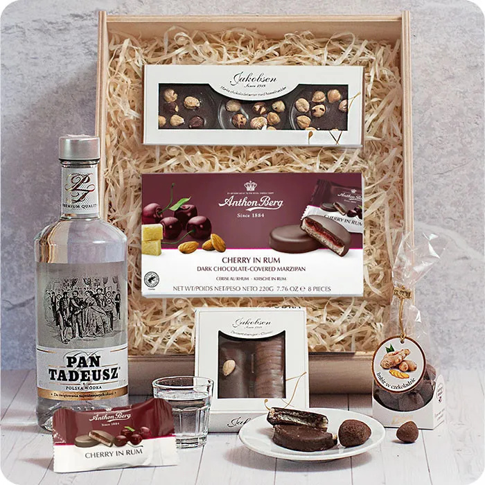 Szukasz pomysłu na prezent na Dzień Ojca? Poczta Kwiatowa® oferuje wiele ciekawych podarunków dla mężczyzn. Jednym z nich jest wyjątkowy Zestaw dla Taty, w którym odbiorca znajdzie deserowe krążki z orzechami, imbir w czekoladzie, batony czekoladowe, polską wódkę Pan Tadeusz oraz ekskluzywne czekoladki z marcepanem i owocami z wódką. Ta oryginalna kompozycja delikatesowa z pewnością przypadnie do gustu każdemu. Zaskocz swojego tatę i podaruj mu wiele radości.