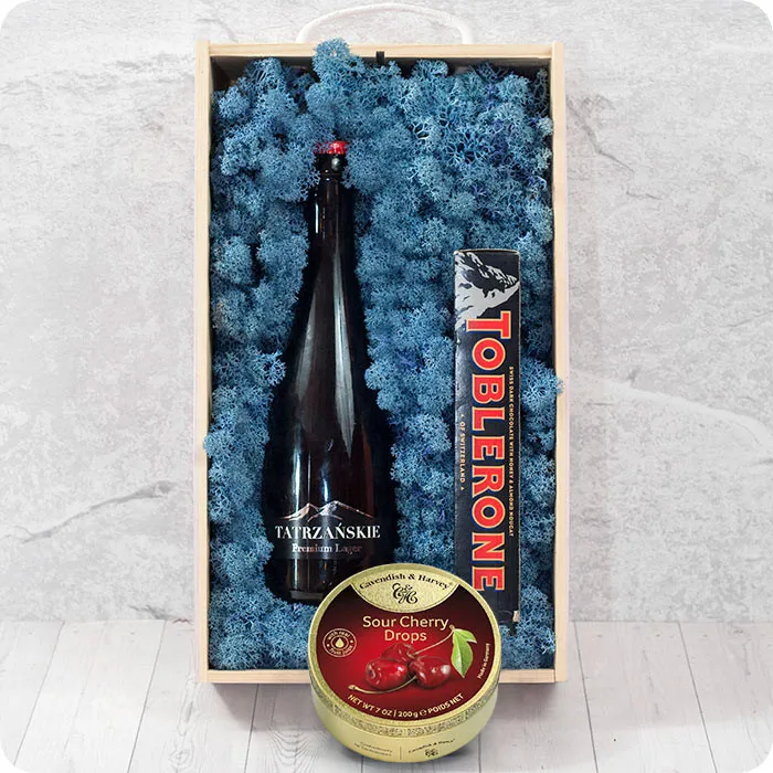 Zestaw Górski Potok to kompozycja prezentowa, która przenosi nas w malownicze górskie krajobrazy, gdzie świeże powietrze, natura i wyjątkowe smaki tworzą niezapomniane chwile. Ten zestaw to doskonały prezent dla miłośników górskich przygód i wyjątkowych smaków.Niebieski Mech to ozdoba, która przypomina o świeżości i czystości górskich potoków. Dodaje zestawowi wyjątkowego uroku i harmonii z naturą.Tatrzańskie Piwo to smak górskich przygód. To odniesienie do tradycji piwowarskich, które są znane w tatrzańskich regionach.Cukierki o smaku mango-chilli to połączenie słodyczy i ostrości, co odzwierciedla różnorodność smaków i doznań w górach, gdzie jedno chwycenie oznacza rześkość powietrza, a inne klimatyczne wyzwania.Toblerone to kultowa czekolada, która przypomina o wyjątkowych momentach relaksu i przyjemności. Jest jak chwila wytchnienia w górach, gdzie można rozkoszować się smakiem i widokiem.Zestaw Górski Potok to nie tylko zestaw prezentowy, ale także wrażenie i emocje, które można przeżyć w górach. To połączenie piękna natury, smaków i przyjemności, które przynosi wyjątkową radość. Ten zestaw to doskonały sposób na wyrażenie sympatii, podziękowania lub życzenia udanych górskich przygód.Poczta Kwiatowa® Zamówienia opłacone do godziny 17:00 doręczymy następnego dnia roboczego. Zamówienia na terenie Warszawy doręczamy tego samego dnia po potwierdzeniu telefonicznym. Do wybranych miejscowości doręczamy prezenty także w sobotę.Dostępność: Cały rok